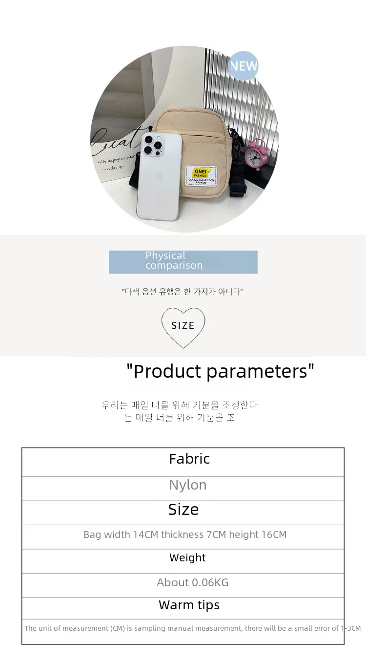 • Fashionable Design :This nylon cloth bag features a simple yet fashionable design, making it a perfect accessory for any outfit. Its Korean style is trendy and casual, ideal for daily use.