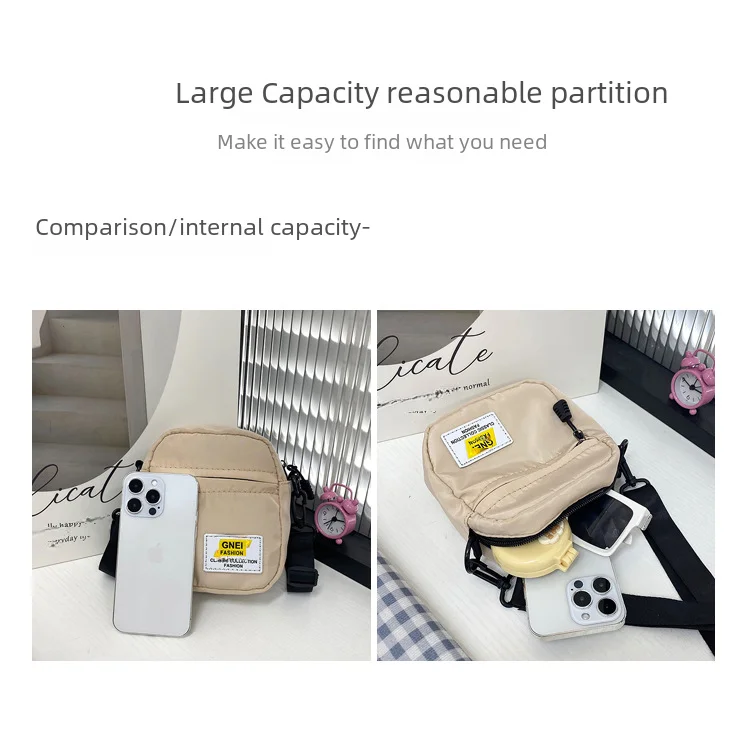 Fashionable Simple Women’s Nylon Crossbody Bag Casual Mini Square Bag Korean Style Single Shoulder Sling For Women