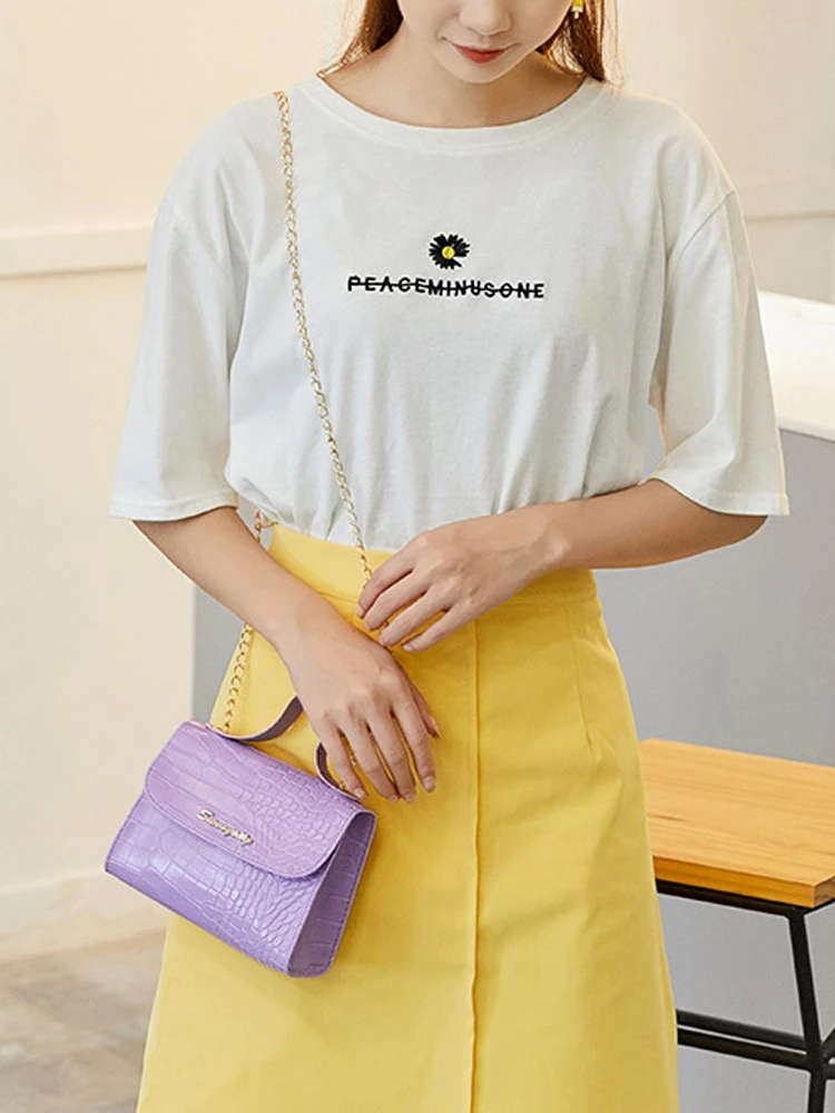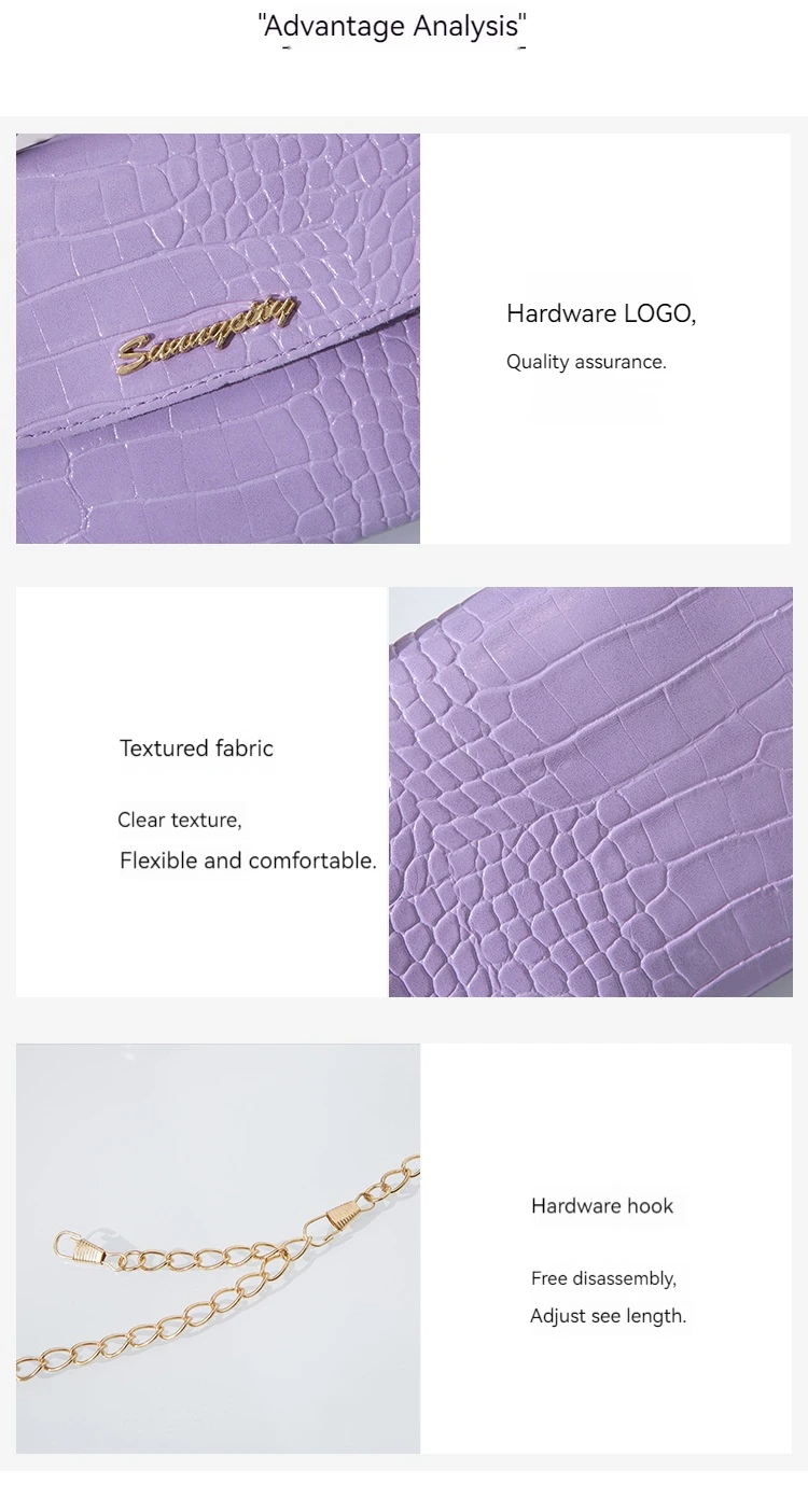 Item Name: women handbag mini female bags wholesale chic chain handbags crossbody bags single shoulder bag women handbagsPackage: 1PcsMaterial: PUWeight: Around 0.13kg/PcsColor: Black/White/Yellow/PurpleSize: 17*6*12.5cmNote: Thers maybe have little color different in pictures. Please don't mind it.